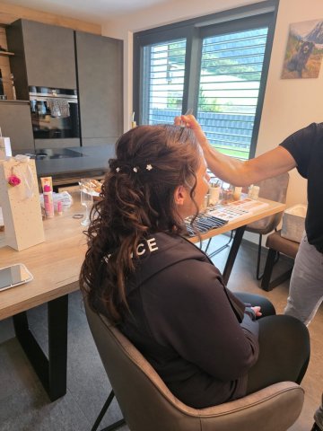 Ein natürliches Haarstyling kann von mir dazugebucht werden. Hochsteckfrisur, schlicht oder geflochten. Bilder sind auf Instagram zu besichtigen.
